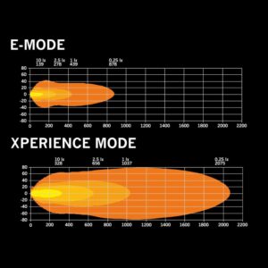 Η λειτουργία E-mode είναι πλήρως πιστοποιημένη σύμφωνα με ECE R148/R149, με reference number 2×20. Χάρη στον έξυπνο σχεδιασμό, ενσωματώνει δύο πηγές φωτός σε μία μπάρα, εξασφαλίζοντας υψηλή απόδοση φωτισμού ενώ παραμένει νόμιμη για χρήση σε δρόμο.
