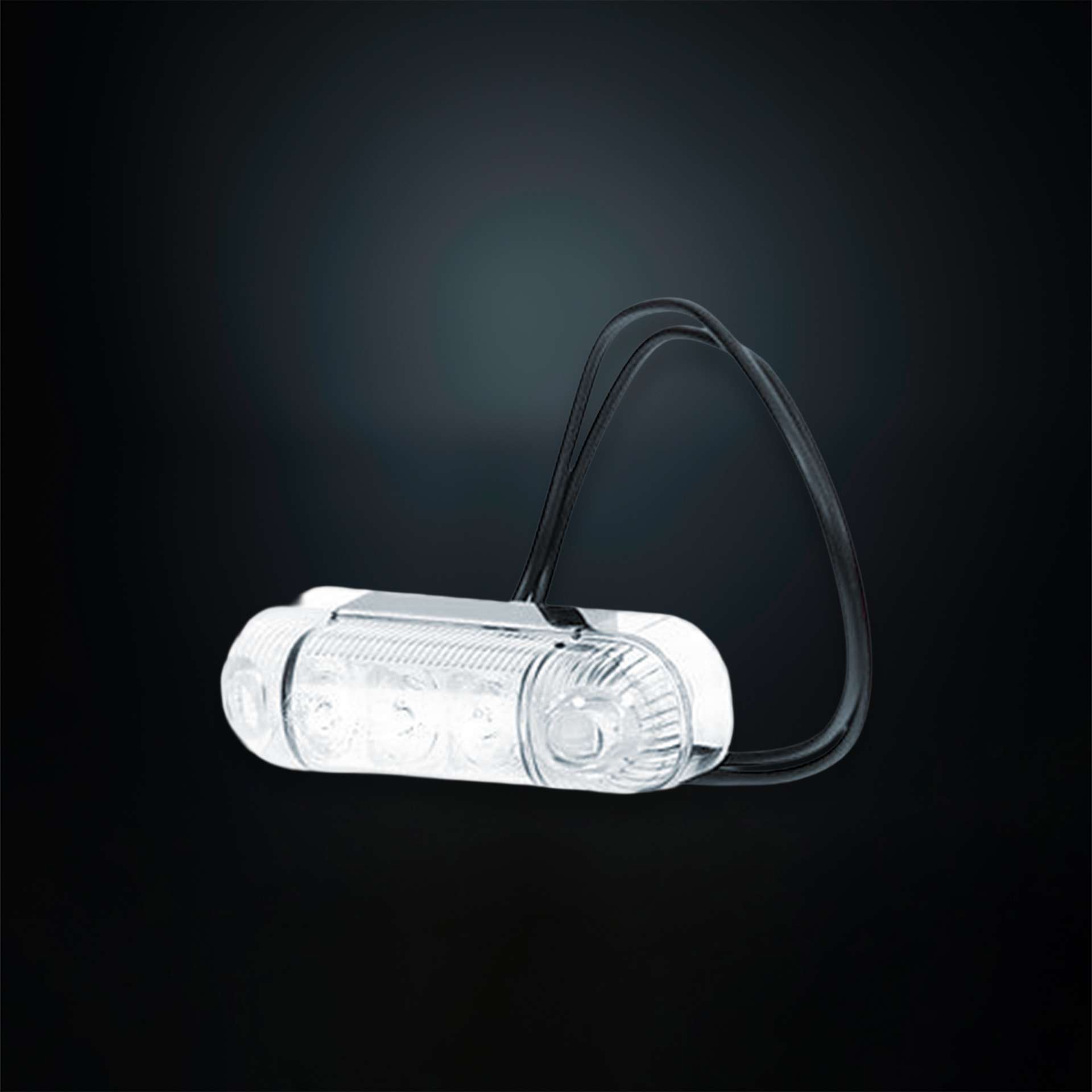 Λευκό LED φως θέσης με διάφανο φακό και 3 LED. Τοποθετείται με δύο οπές στήριξης.