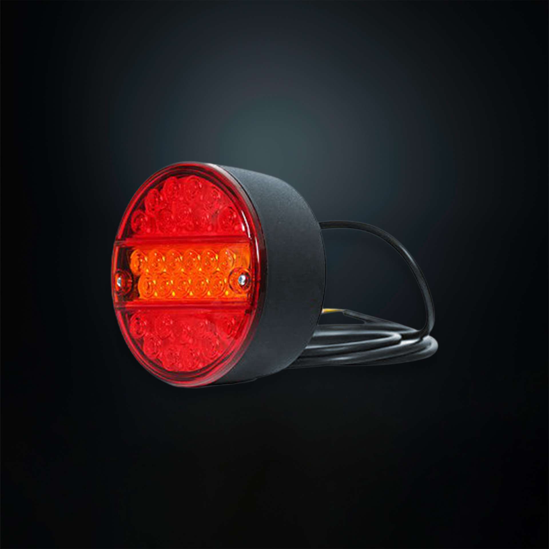 Στρογγυλό LED πίσω φανάρι με 3 λειτουργίες – φως θέσης, φως φρένων και φλας. Απλός σχεδιασμός για εύκολη εγκατάσταση.