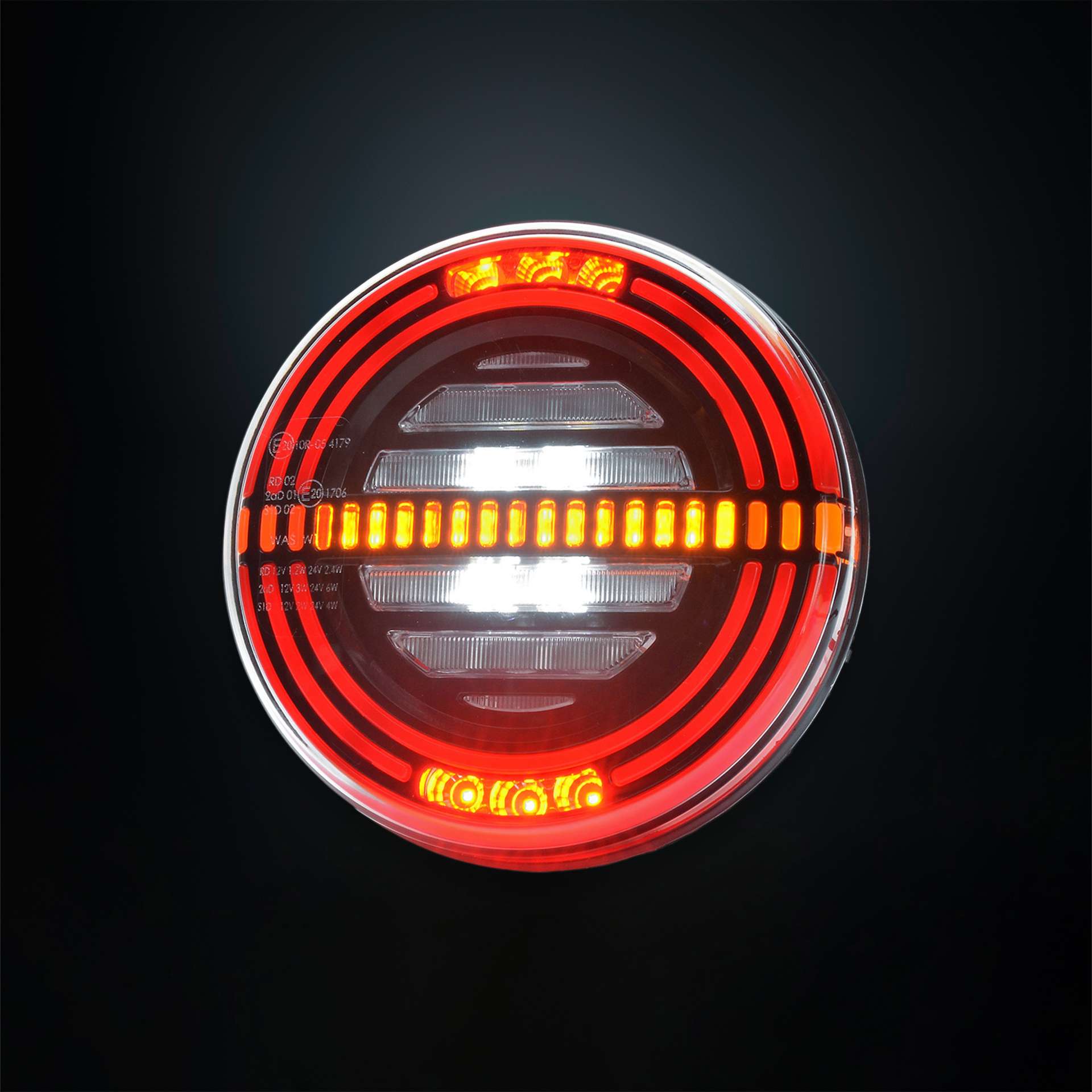 Πολυλειτουργικό πίσω φως LED σχεδιασμένο για αξιόπιστη και αποδοτική λειτουργία σε κάθε τύπο οχήματος. Συνδυάζει πέντε βασικές λειτουργίες σε μία μονάδα: φως θέσης, φως φρένων, φλας, φως όπισθεν και φως ομίχλης, προσφέροντας ολοκληρωμένη λύση φωτισμού με υψηλή ορατότητα και ασφάλεια.