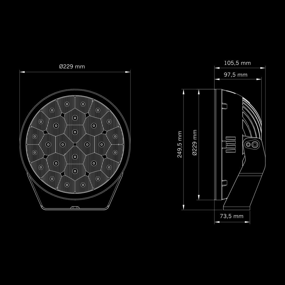 Με συνδυασμό 2 τεμαχίων 9” flood και 1 τεμαχίου 9” spot σε αυτοκίνητο, απολαμβάνεις 29.000 πραγματικά lumen και 1 lux στα 1195 μέτρα. Σε φορτηγό, με 6 τεμάχια 9” spot τοποθετημένα στην οροφή, η απόδοση εκτοξεύεται στα 60.000 lumen και 1 lux σε εντυπωσιακά 2449 μέτρα.