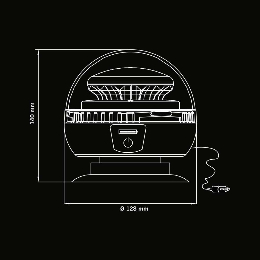 Κομψός Και Κλασικός Σχεδιασμός Με Φωτεινό Και Ομαλό Φωτισμό. Ο Περιστροφικός Φάρος Big Energy Με Μαγνητική Βάση Έχει Ύψος 140 Mm Και Διάμετρο 128 Mm.